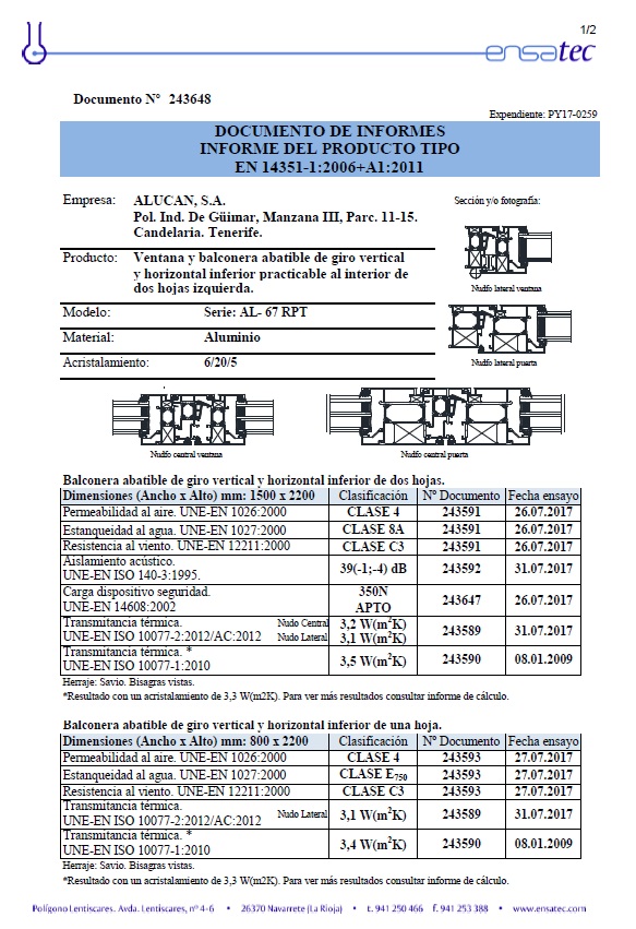 Ensayos AL67RPT ENSATEC Publicado 21 septiembre, 2017 en 583 × 851 en ¿Qué laboratorios acreditan los ensayos de los cerramientos y cuáles no? ← Anterior