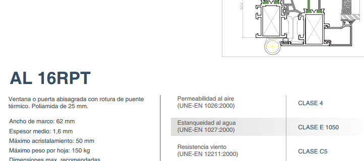 La clasificación de la ventana es un dato que los fabricantes de sistemas de aluminio adjuntan en sus fichas (como en el extracto bajo estas líneas), pero que debería ser prescrito por técnicos facultativos en proyecto.
